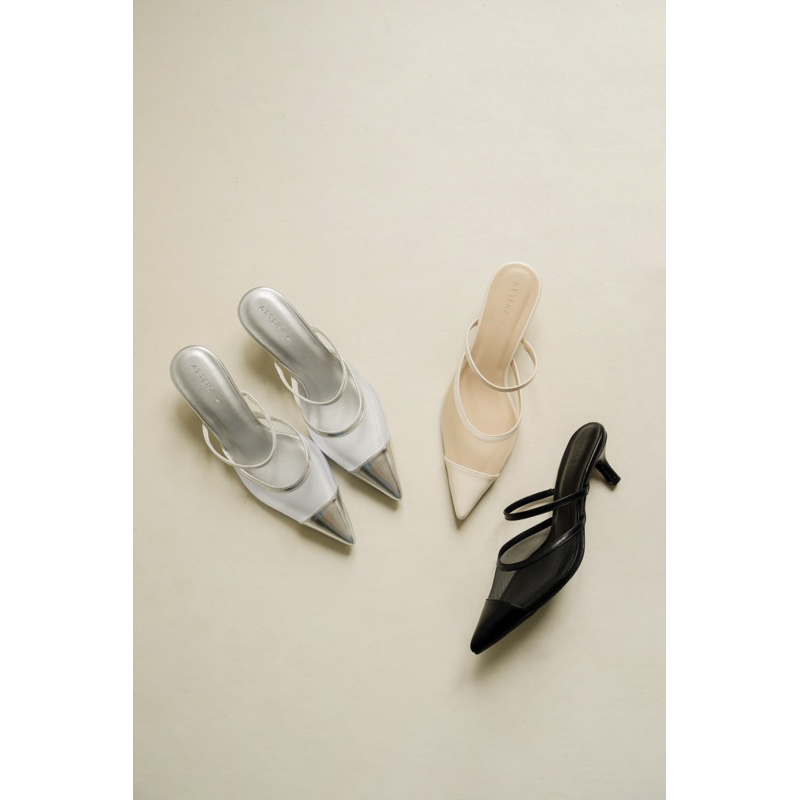 ATTERA - AYRA (black/cream/silver) - Sepatu Hak Tertutup Wanita 5cm - Sepatu Mules - Sepatu Heels - Heels Wanita - Heels Kantor - Heels Pesta - Sepatu Sehari Hari