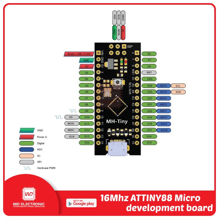 ATtiny88 Micro development board 16Mhz Upgraded Arduino Nano v3