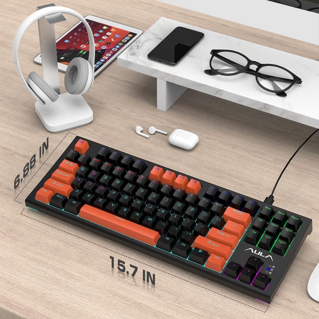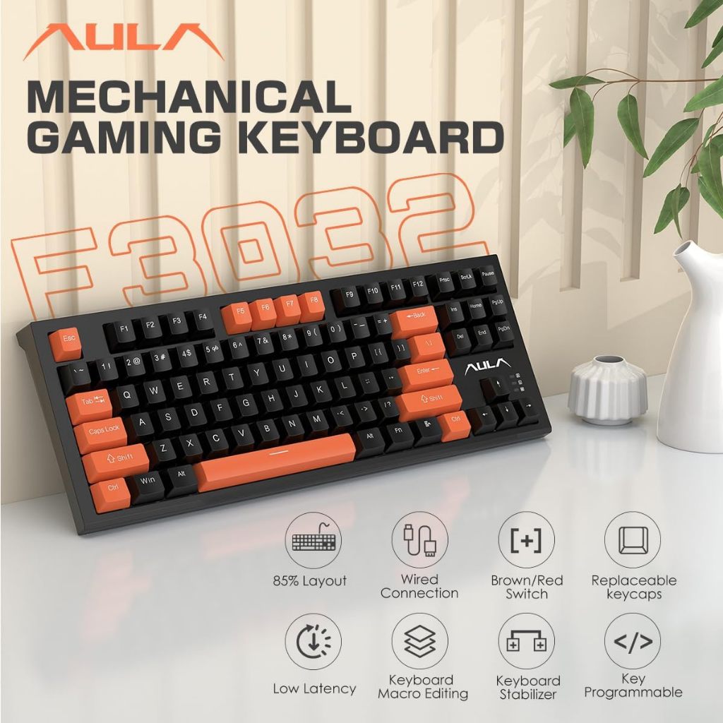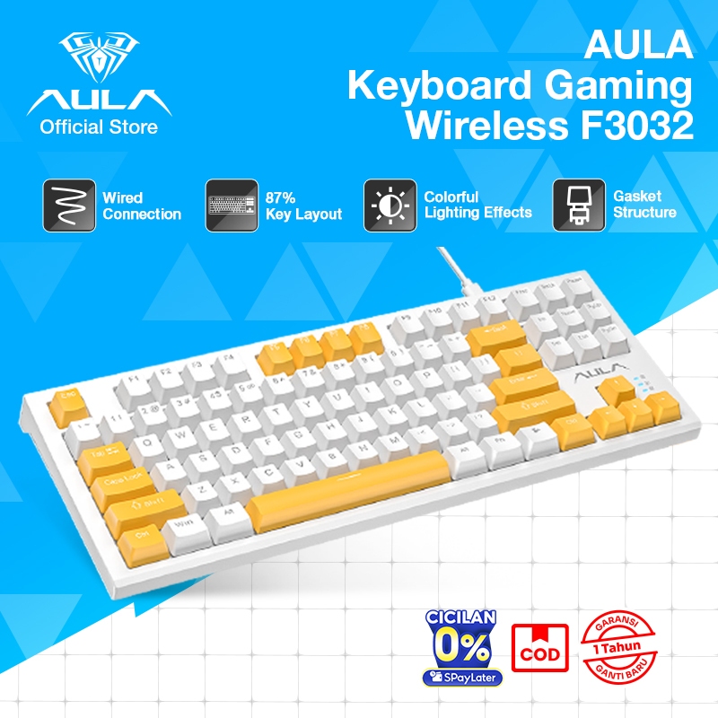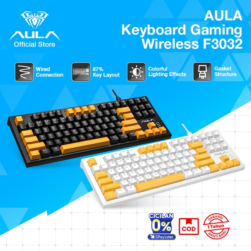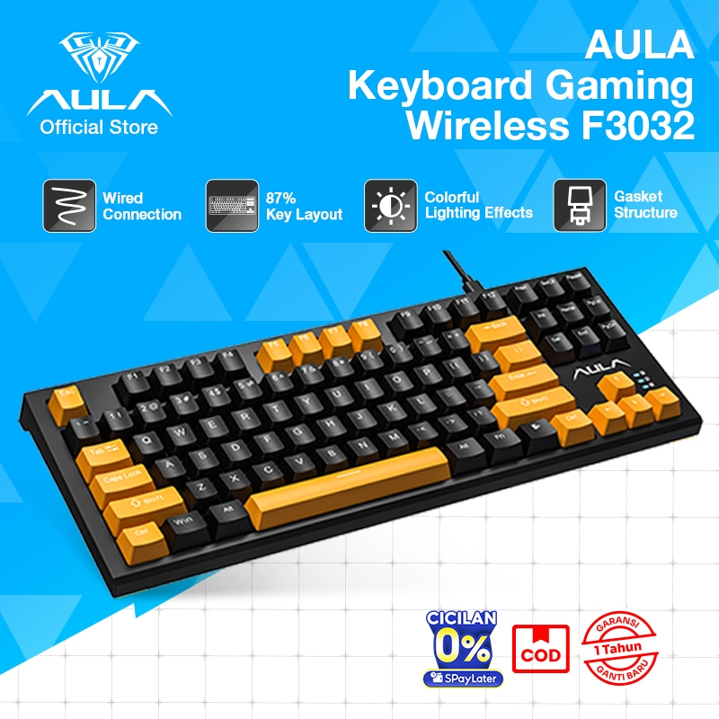 AULA Keyboard Mechanical Wired Keyboard Gaming Kabel 80% Layout Mekanikal F3032 Macro Mechanical Switch Keyboard Gaming / Office Colorful LED Back Light Ergonomic Original Garansi 1 Tahun