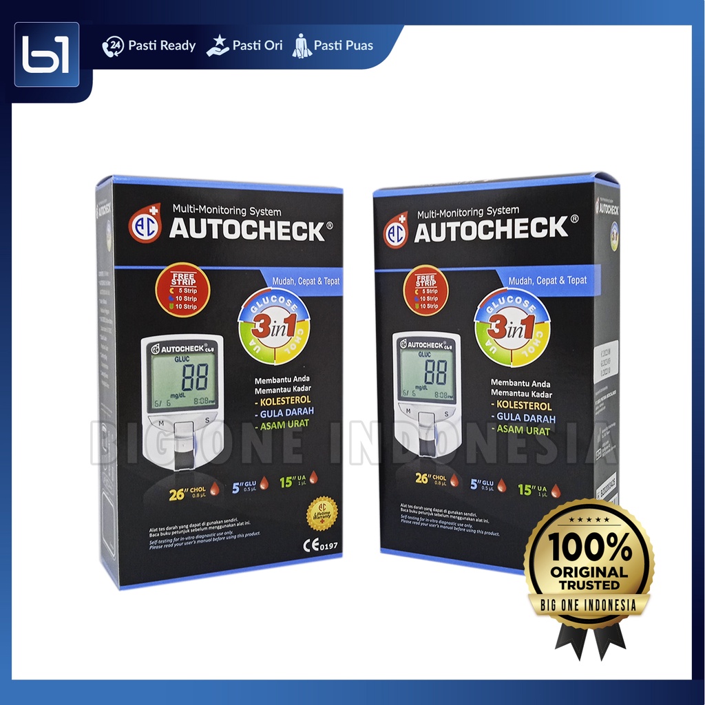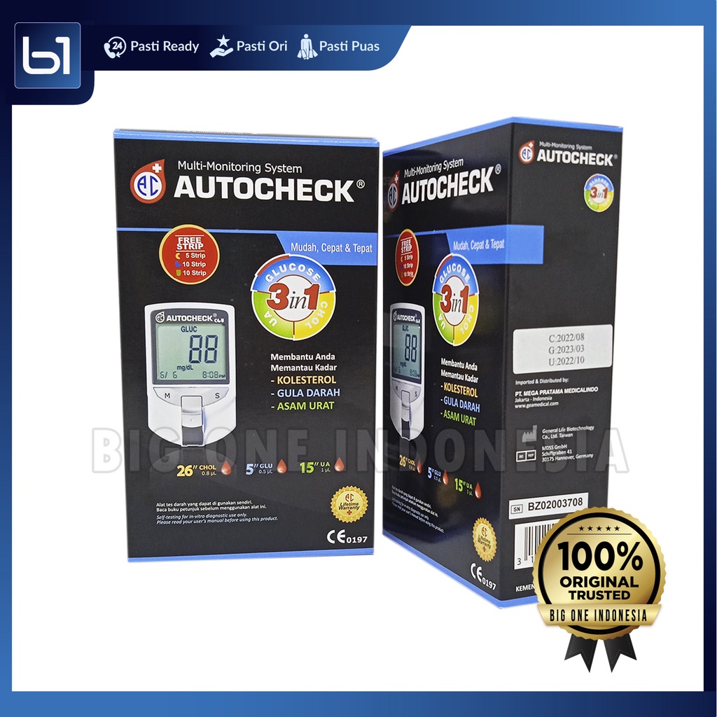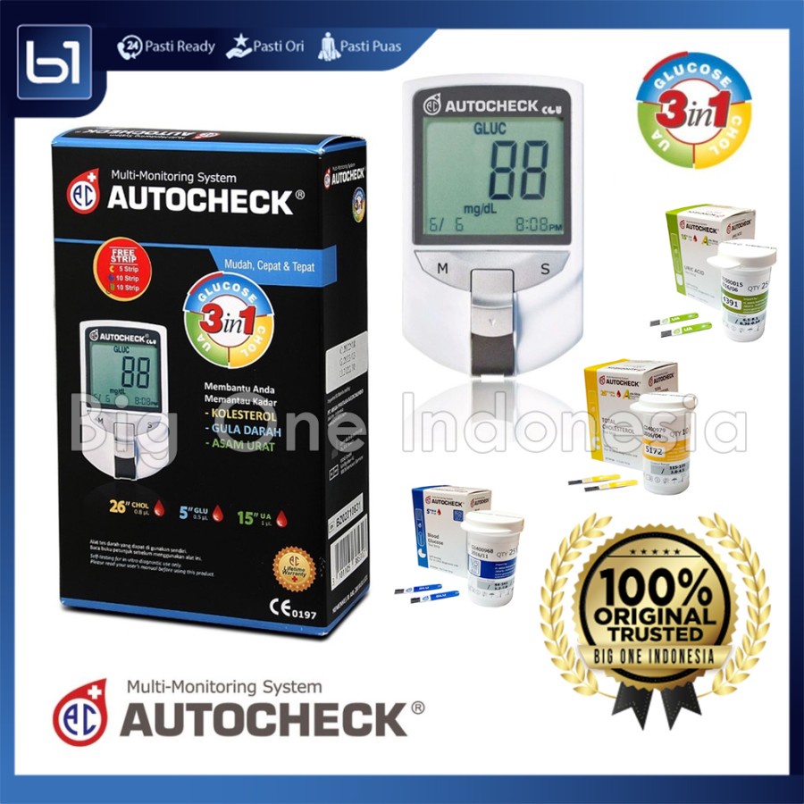 AUTOCHECK Device 3in1 Original, Alat Cek Autocheck Gula Darah, Kolesterol, Asam Urat, Auto Check 3 in 1 CGU Multi Monitoring System
