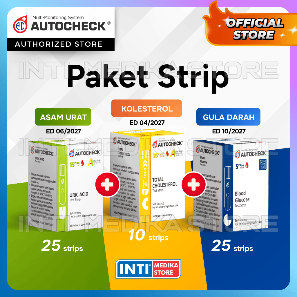 AUTOCHECK - Paket Strip Tes Gula Darah + Asam Urat + Kolesterol Kolestrol | Refill Blood Glucose + Uric Acid + Cholesterol Test Strip