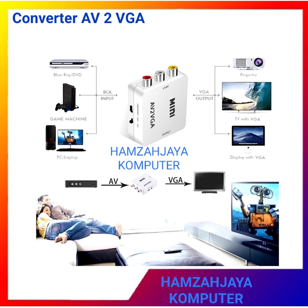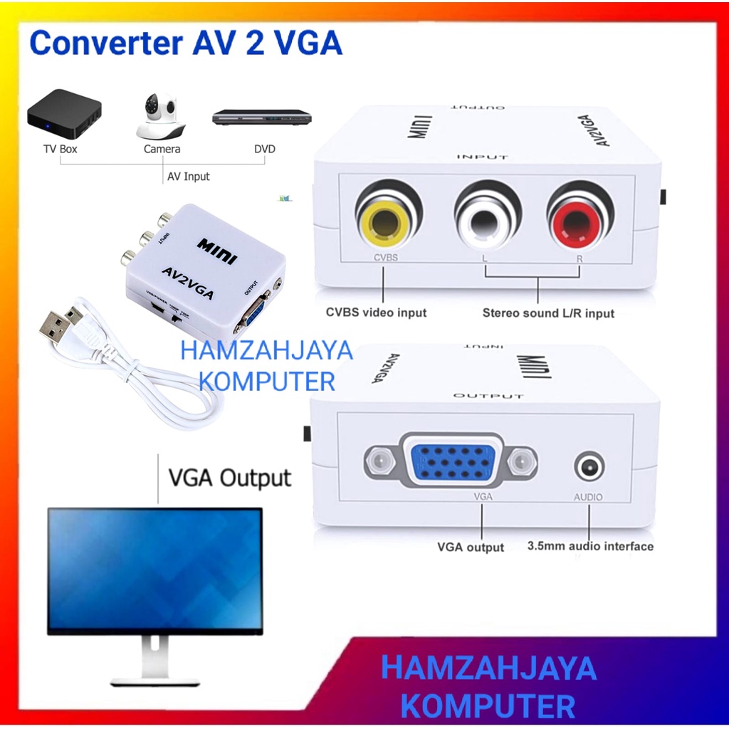 AV2VGA KONVERTER AV RCA TO VGA CONVERTER PS2 KE MONITOR MINI