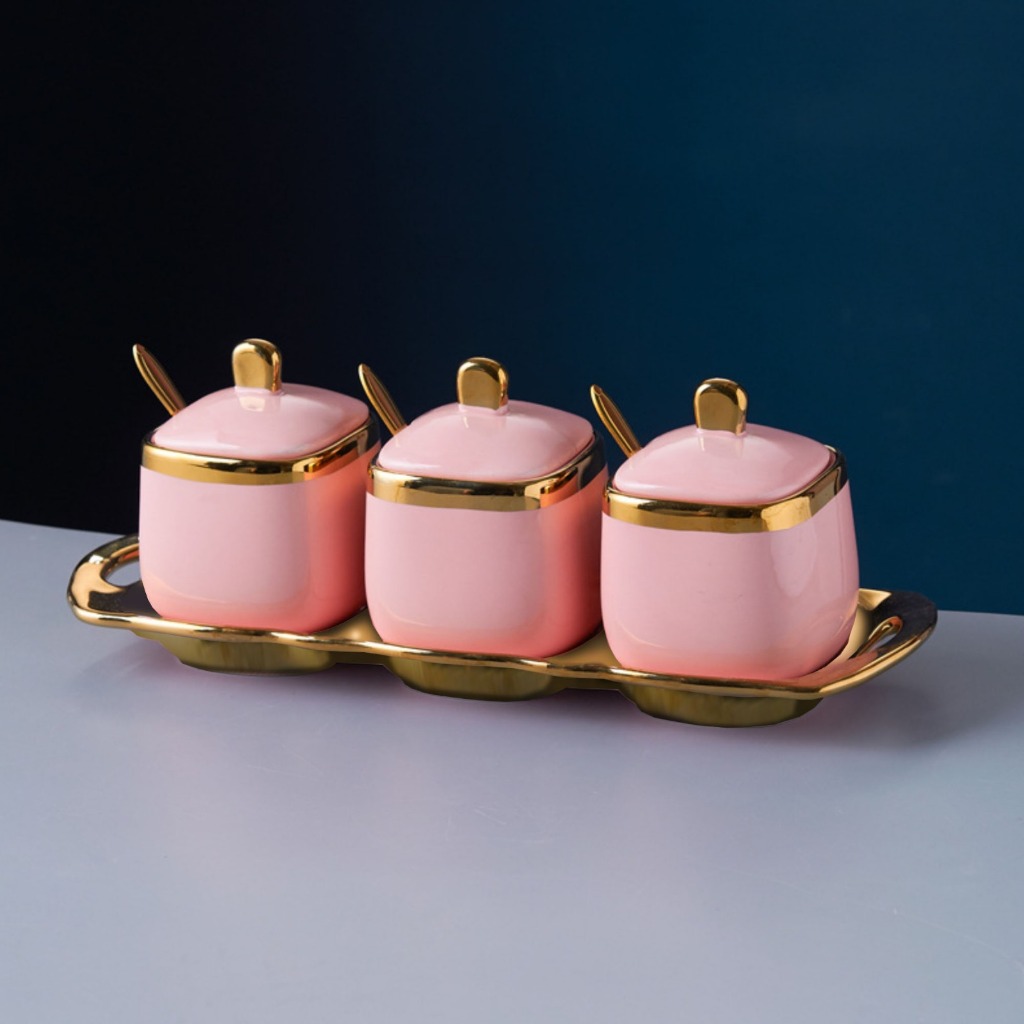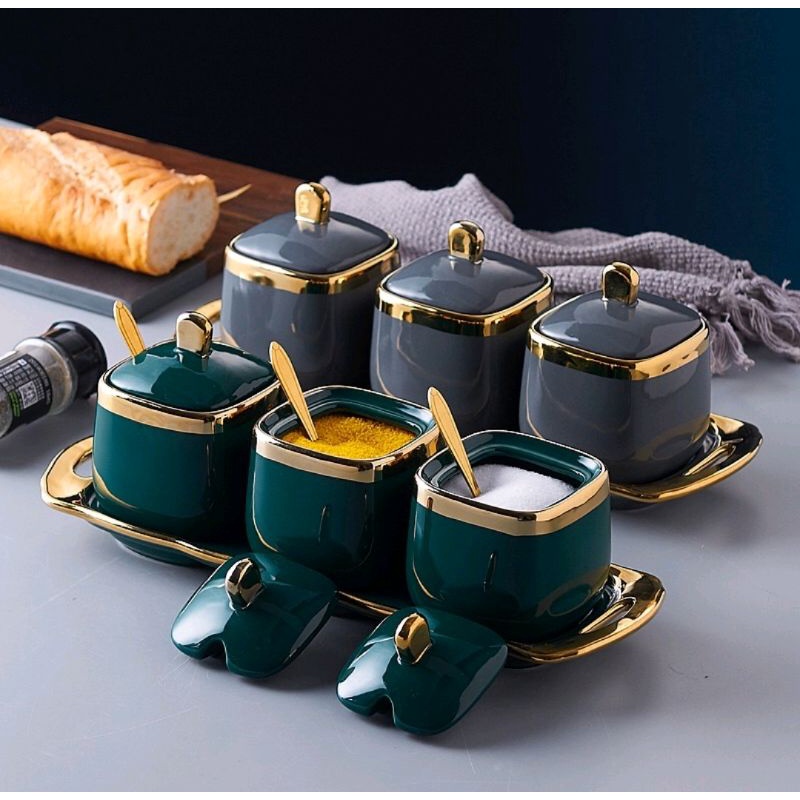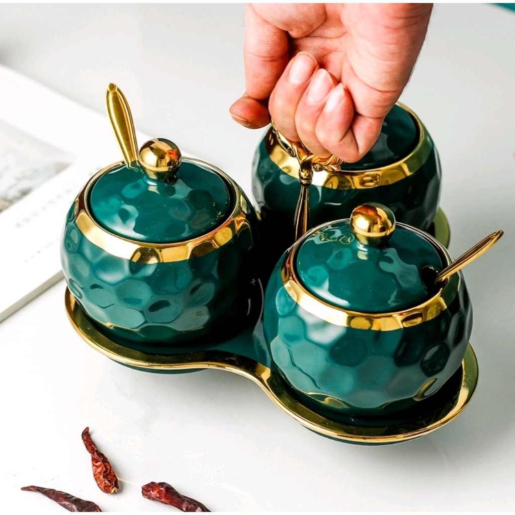 AVELINE Tempat Bumbu Keramik Berlin / Tempat Bumbu Mewah / Tempat Bumbu Green Diamond Set / Luxury Tempat Bumbu / Nordic Seasoning Cans Free Box