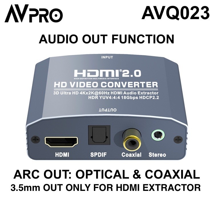 AVPRO AVQ023 4K HDMI Extractor & ARC 4Kx2K 60Hz YUV444 HDCP2.2