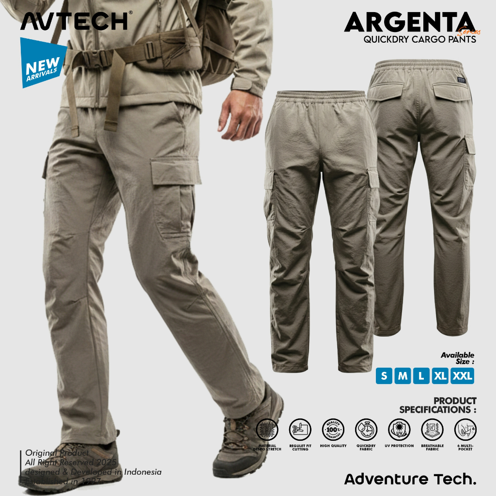 AVTECH - Celana Panjang Pria Wanita Cargo Gunung Outdoor Lifestyle Quick Dry Reguler Fit - ARGENTA