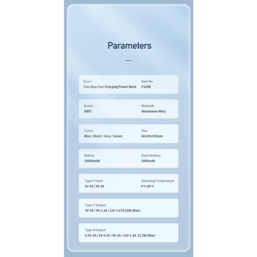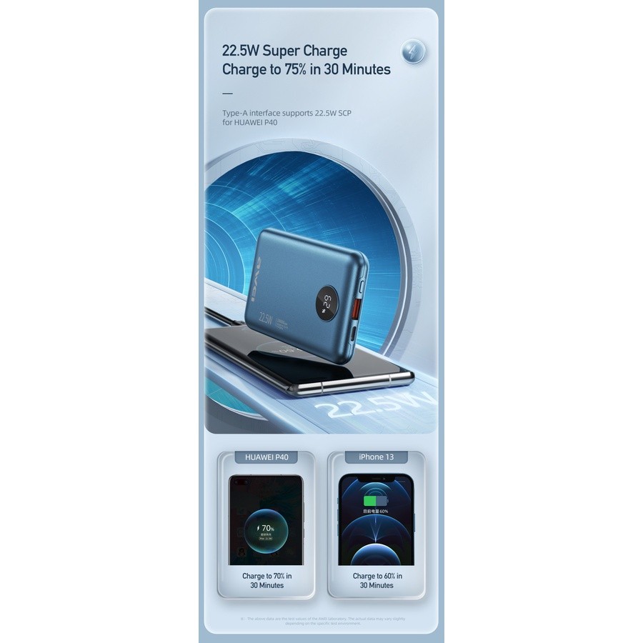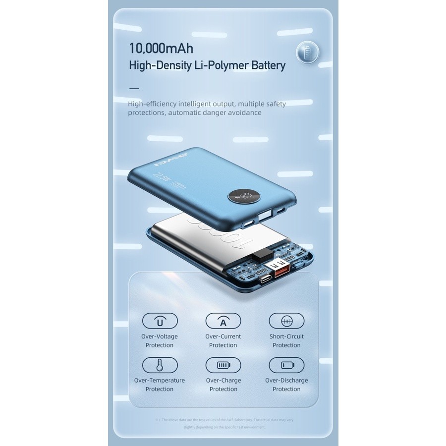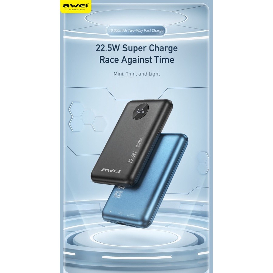 AWEI Power Bank Android 10000mAh Real Capacity Fast Charge PD 22.5W - P120K Hitam