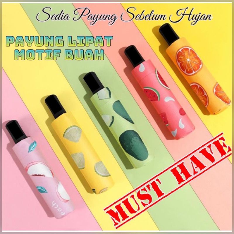 AZ Payung Lipat Murah Import Motif Buah Semangka /Lemon/Alpukat/Jeruk/BuahPeach