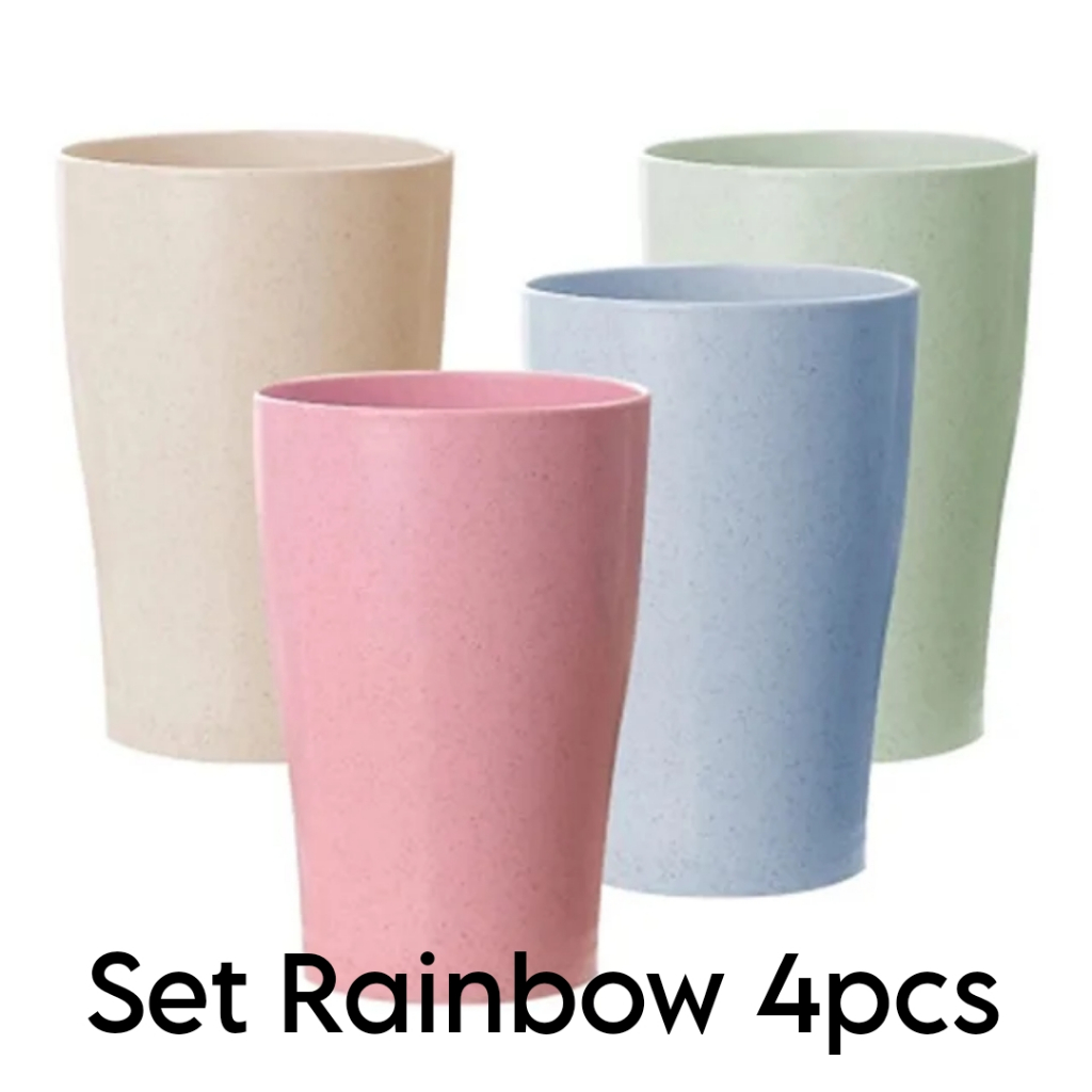 AZ SET ISI 4PCS GELAS MINUM JERAMI GANDUM CANGKIR PLASTIK WARNA WHEAT STRAW CUP