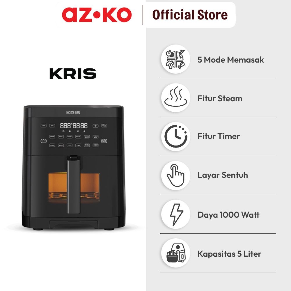 AZKO Kris 5 ltr Air Fryer Digital Dengan Steam 1000 watt - Hitam Alat Masak Goreng Pembuat Makanan Penggoreng Tanpa Minyak Elektronik Dapur