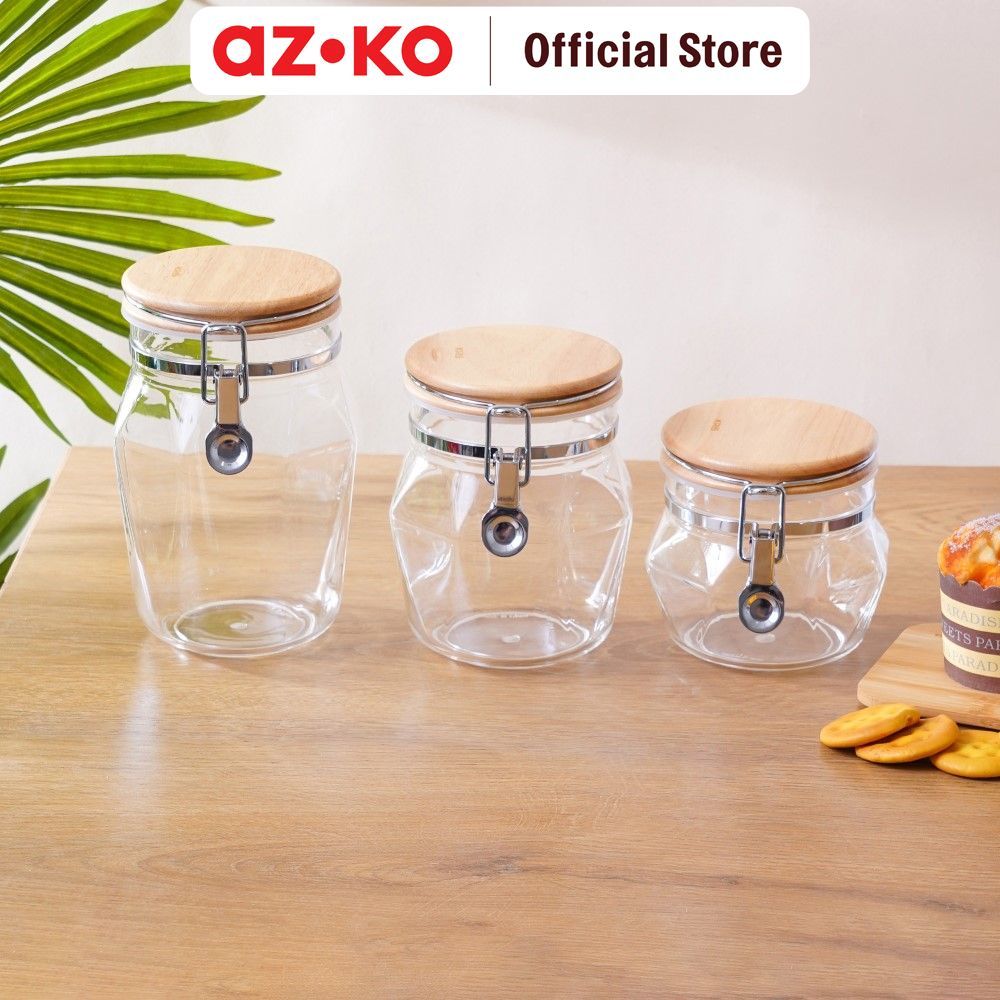 AZKO Picas 650 ml Drake Stoples Dengan Tutup Kayu Transparan Jar Tempat Simpan Snack Dan Permen Setoples Toples Beling Serbaguna Perlengkapan Dapur Wadah Makanan