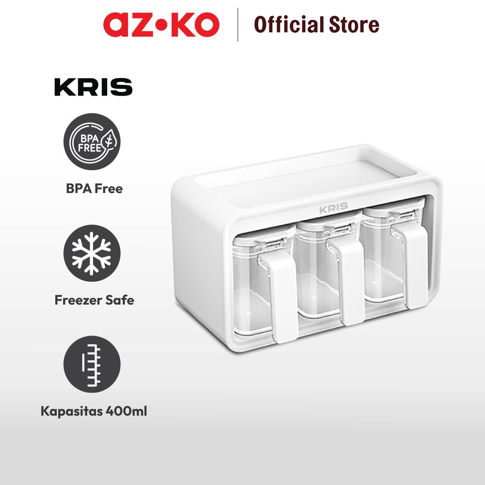 AZKO Kris Tempat Bumbu Dapur - Putih Set Spice Jar Rack Tempat Penyimpanan Bumbu Perlengkapan Dapur Seasoning Jar Set