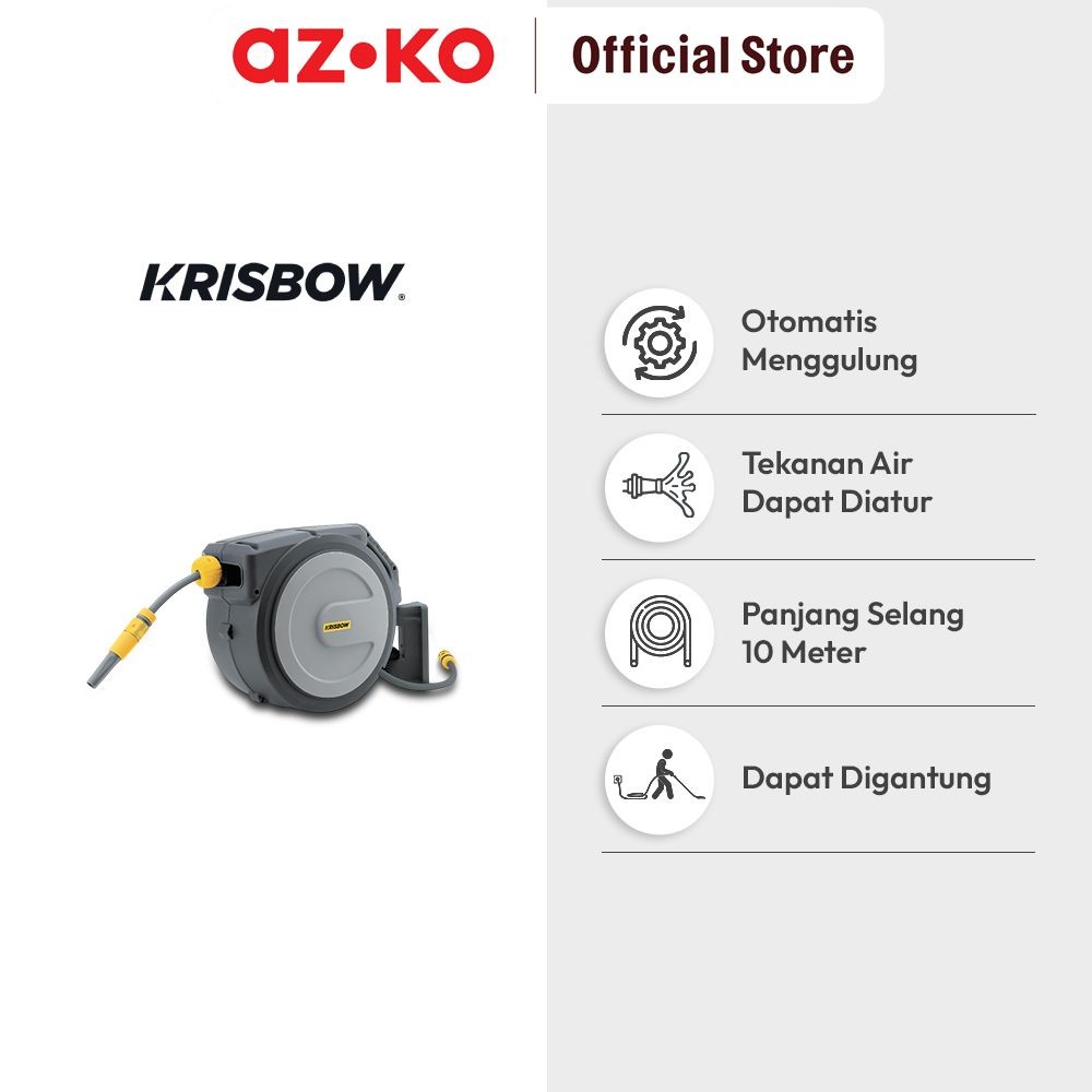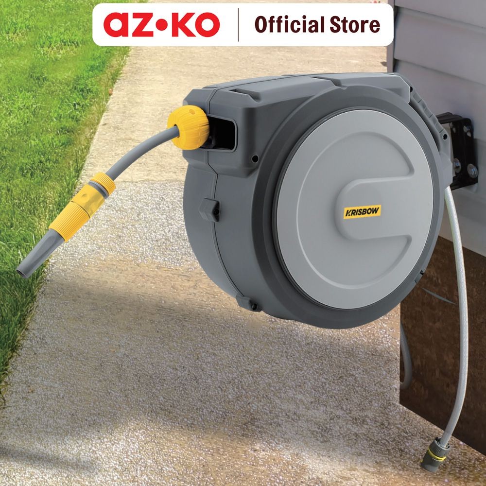 AZKO Krisbow 10 mtr Selang Air Auto Rewind 1/2 Inci - Abu-Abu Garden Hose Reel Auto Rewind Selang Air Serbaguna Perlengkapan Taman Water Hose Outdoor
