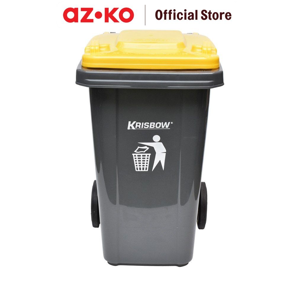 AZKO Krisbow 100 ltr Tempat Sampah Plastik Outdoor Dengan Roda - Kuning Tong Sampah Wadah Pembuangan Alat Kebersihan Trash Bin