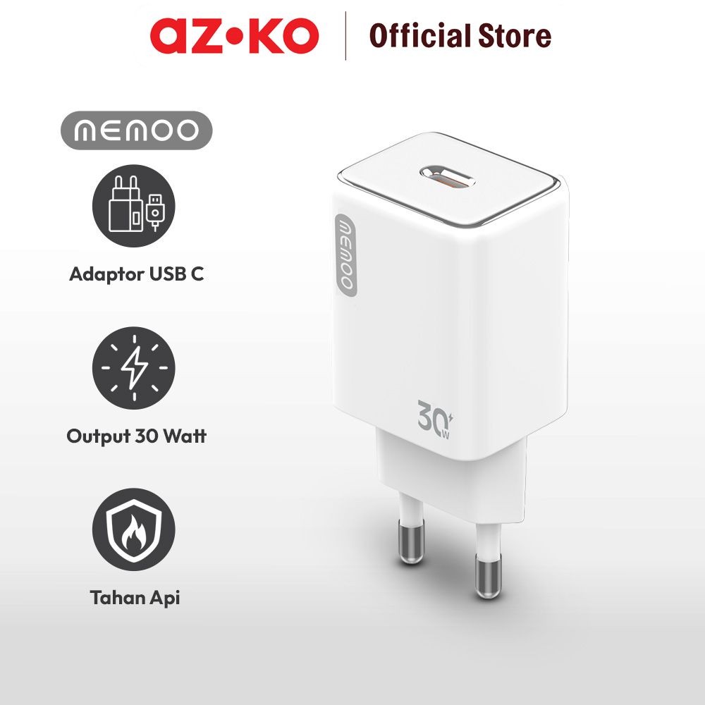 AZKO Memoo Kepala Charger Type C 30 watt Kepala Charger Power Plug Converter Colokan Adapter Casan