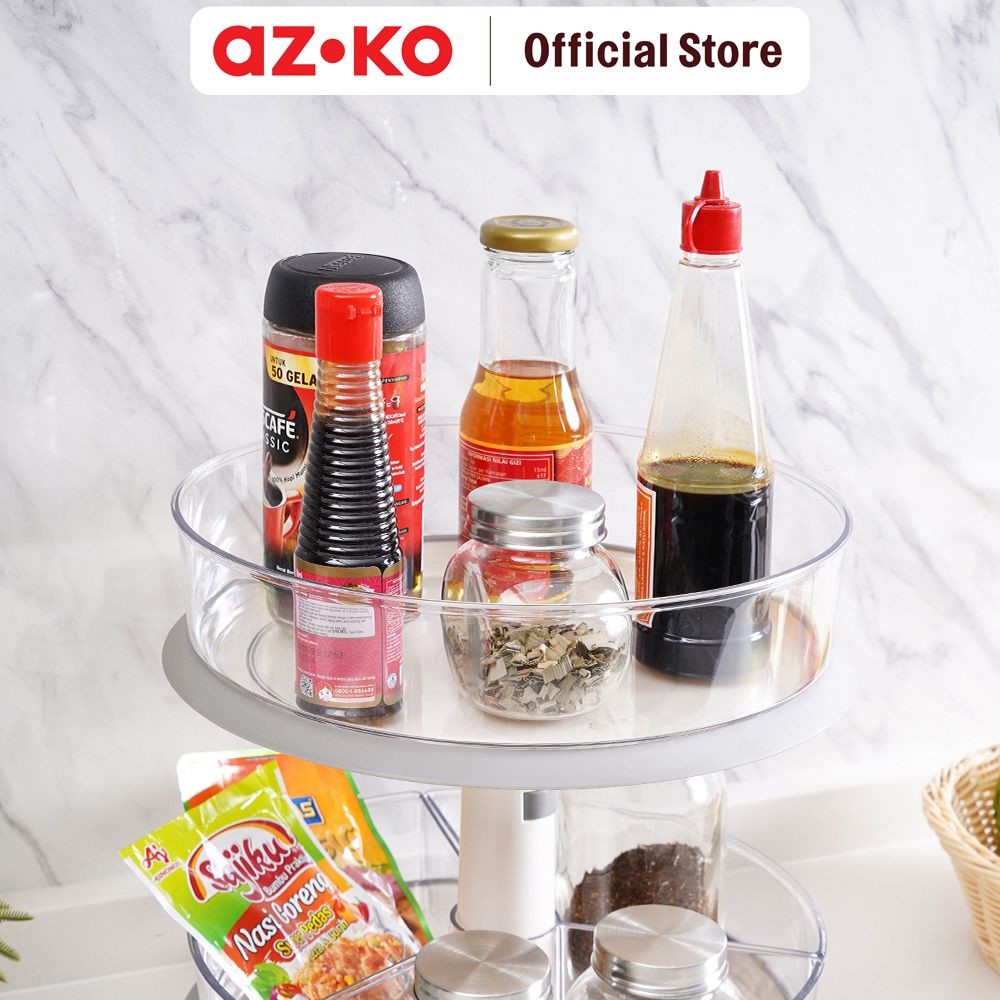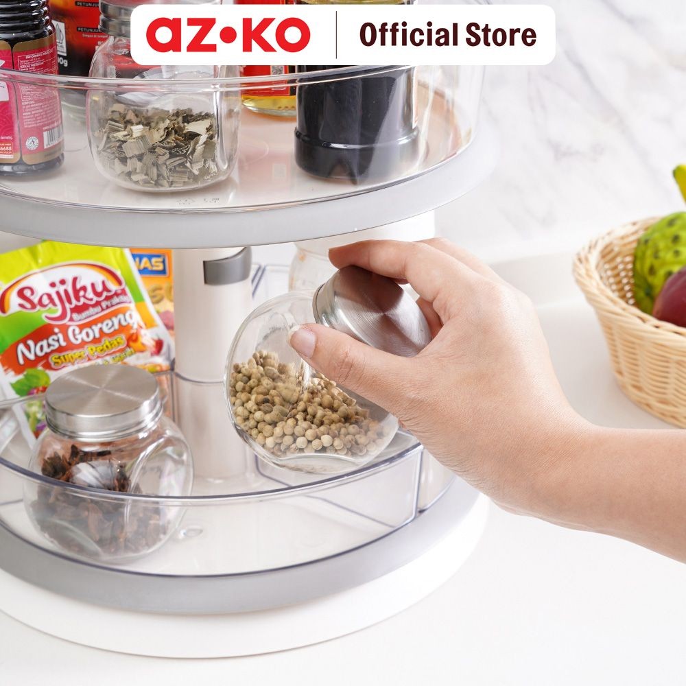AZKO Stora Rak Dapur Putar 2 Tingkat Tempat Penyimpanan Berputar Serbaguna Rak Putar Bumbu Dapur Spices Rack Rotate Kitchen Tools