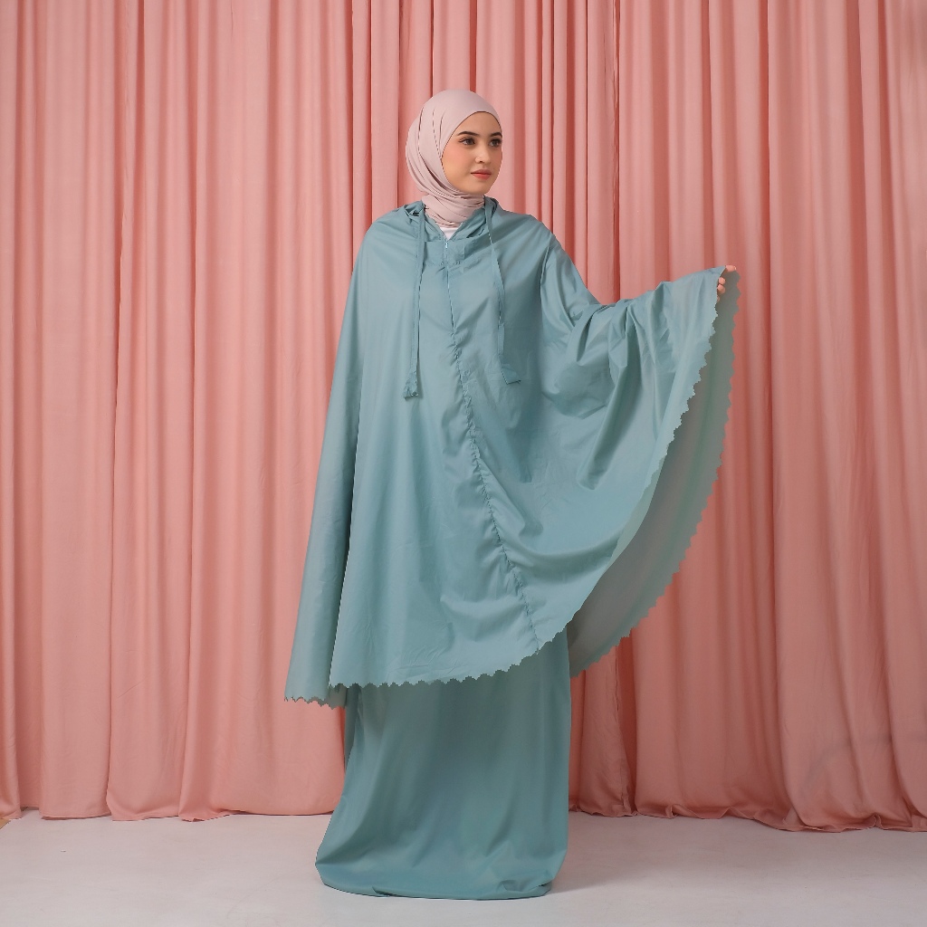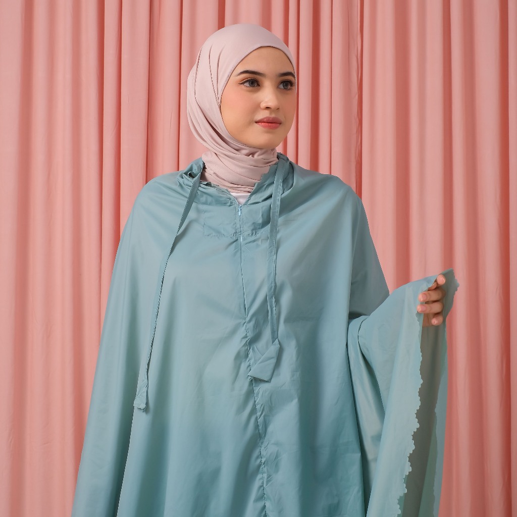AZZAHIR - Mukena Parasut Polos Dewasa Laser Cut 2in1 Resleting