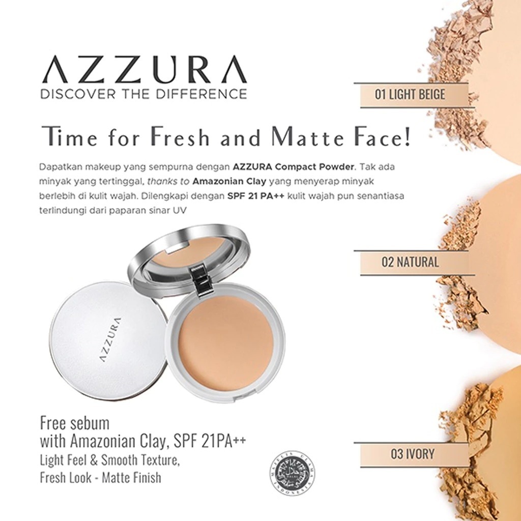 AZZURA Compact Powder | Fresh Look | SPF 21 PA++ | Amazonian Clay & HA | Bedak Padat