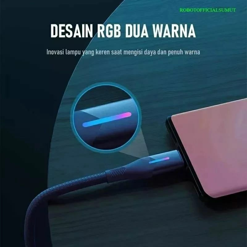 Abd* ROBOT Kabel Data RFC100 Data Cable Type-C USB Fast Charging 3A 100cm Braided Colorful Garansi Original Resmi