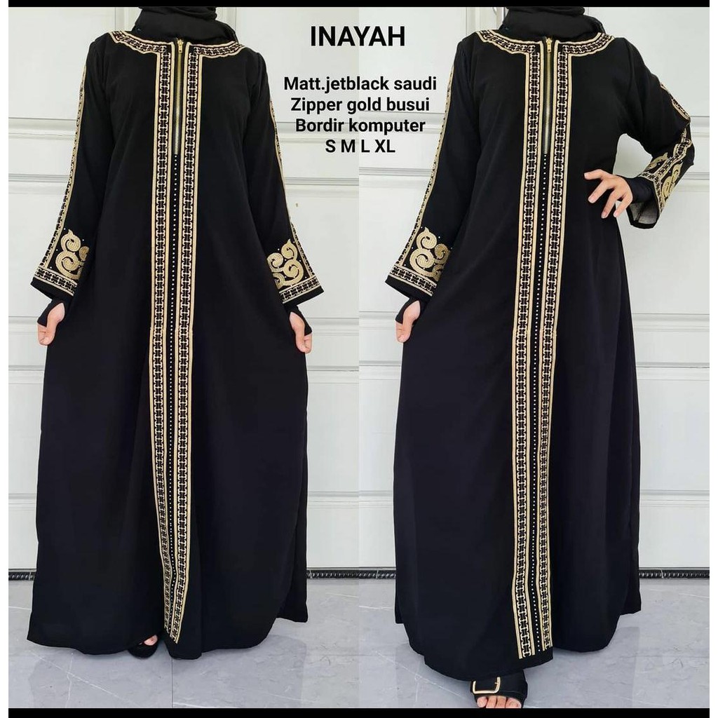 Abaya Gamis Hitam Maxy Dress Fashion Muslim Busana Wanita Turkey Murah Dubai Bordir INAYA