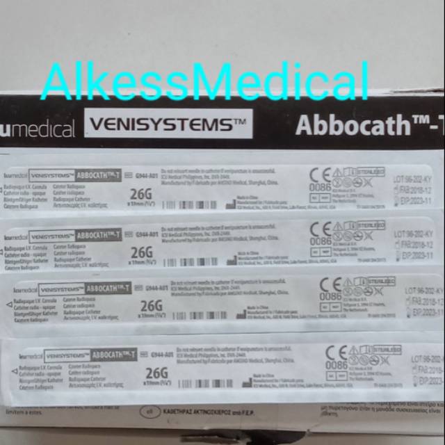 Abbocath 26 G ICU medical Venisystem/Abocat 26/Merek ICU medical Venisystem.