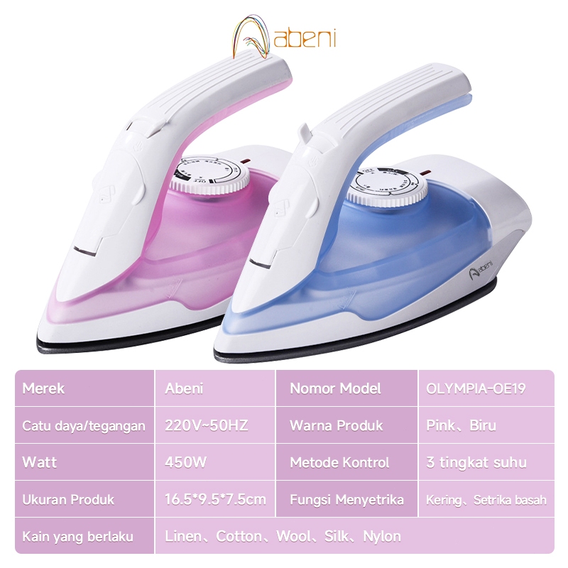 Abeni Setrika Uap Portable Teflon Dilapisi 2in1 Setrika Mini Traveling Original