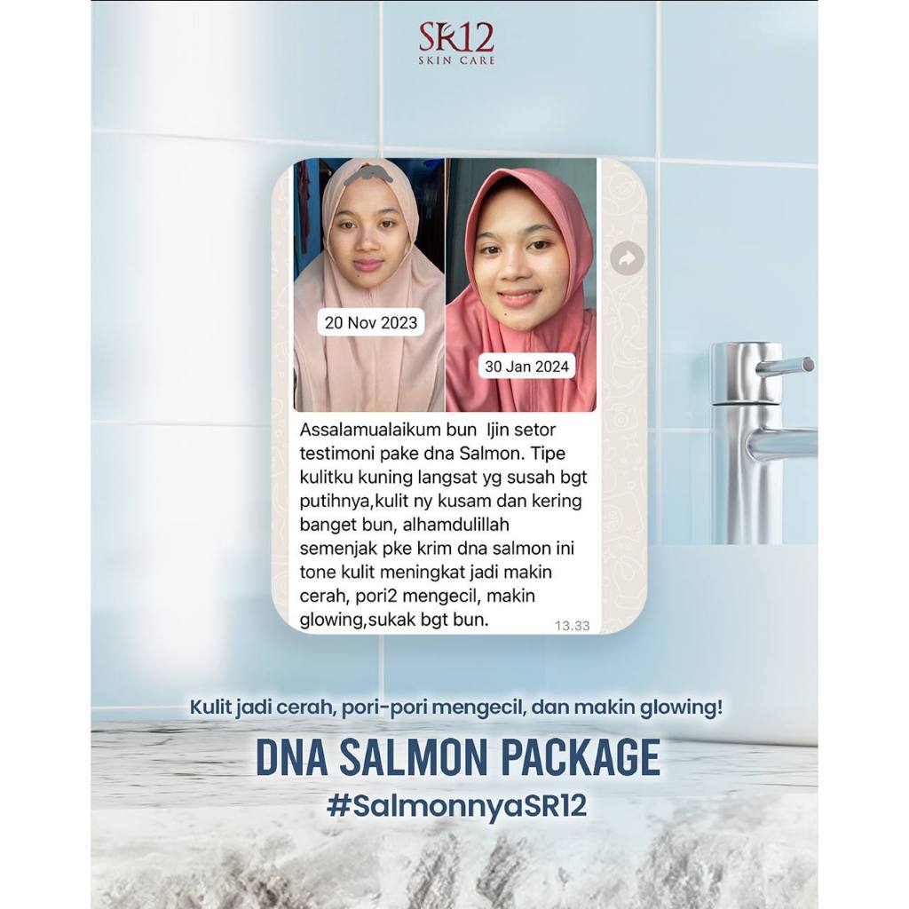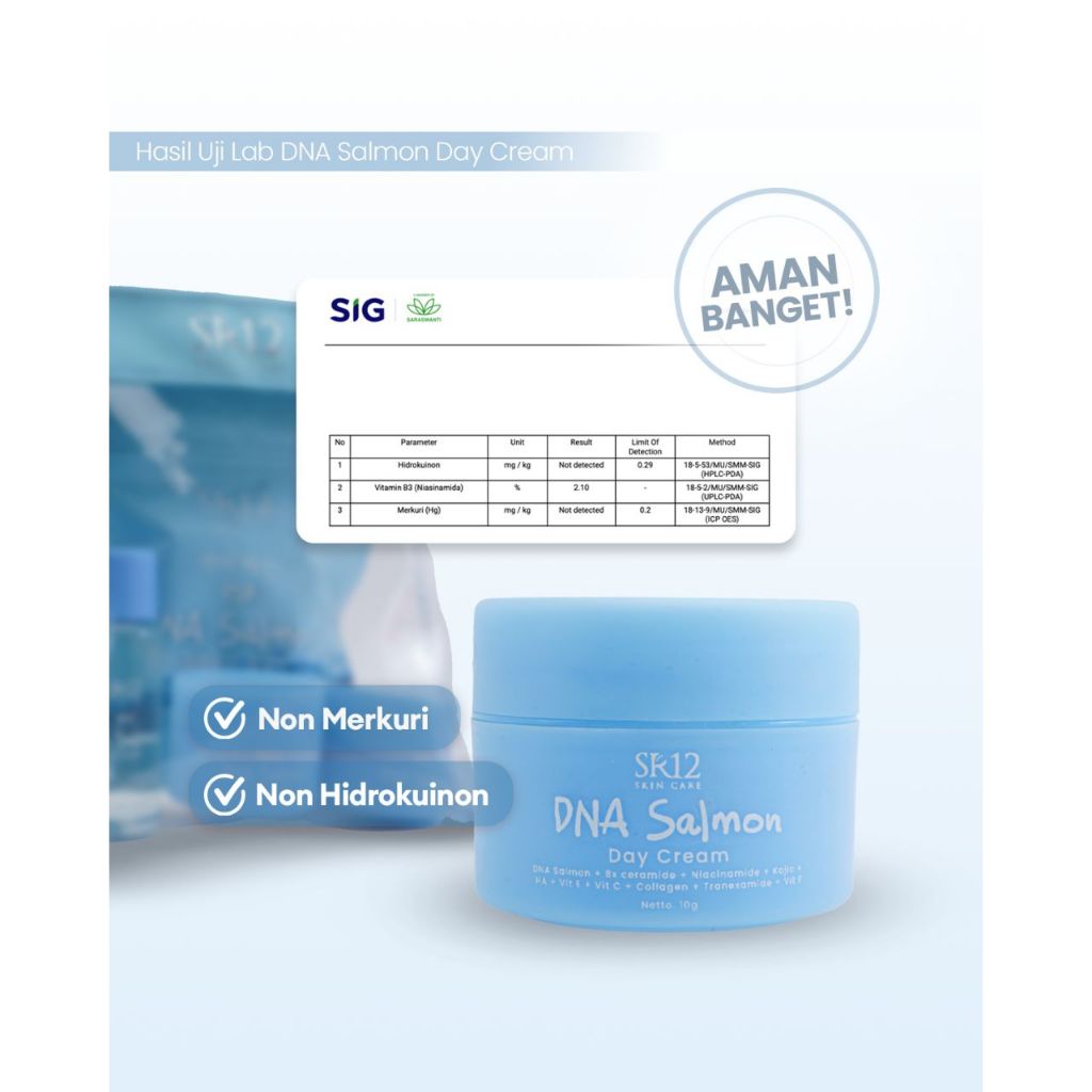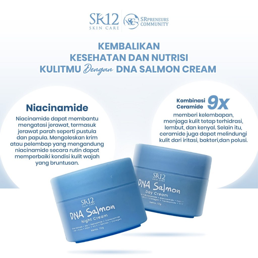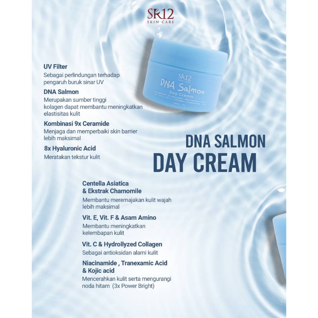 CREAM SIANG DNA Salmon SR12 mencerahkan/melembabkan/melindungi kulit wajah dari sinar matahari