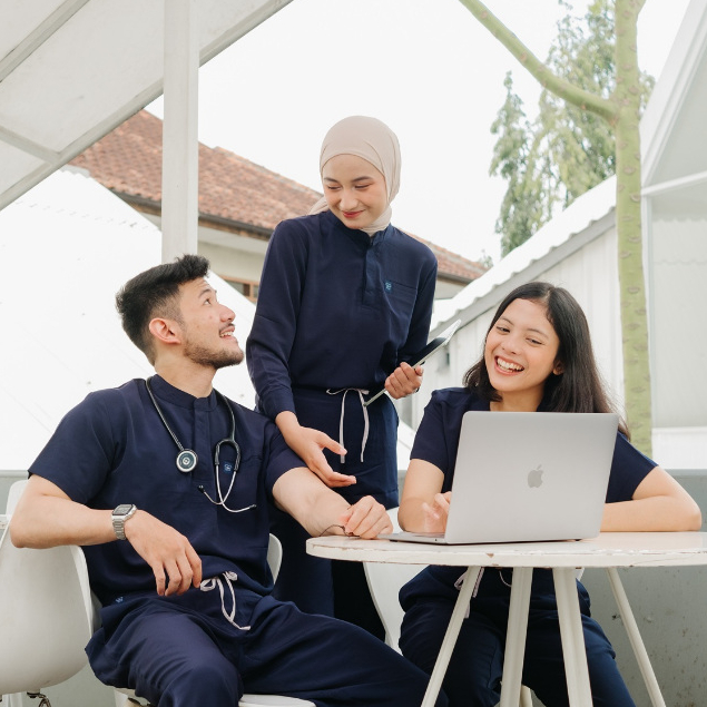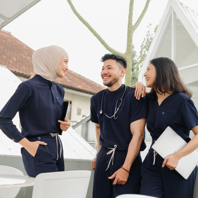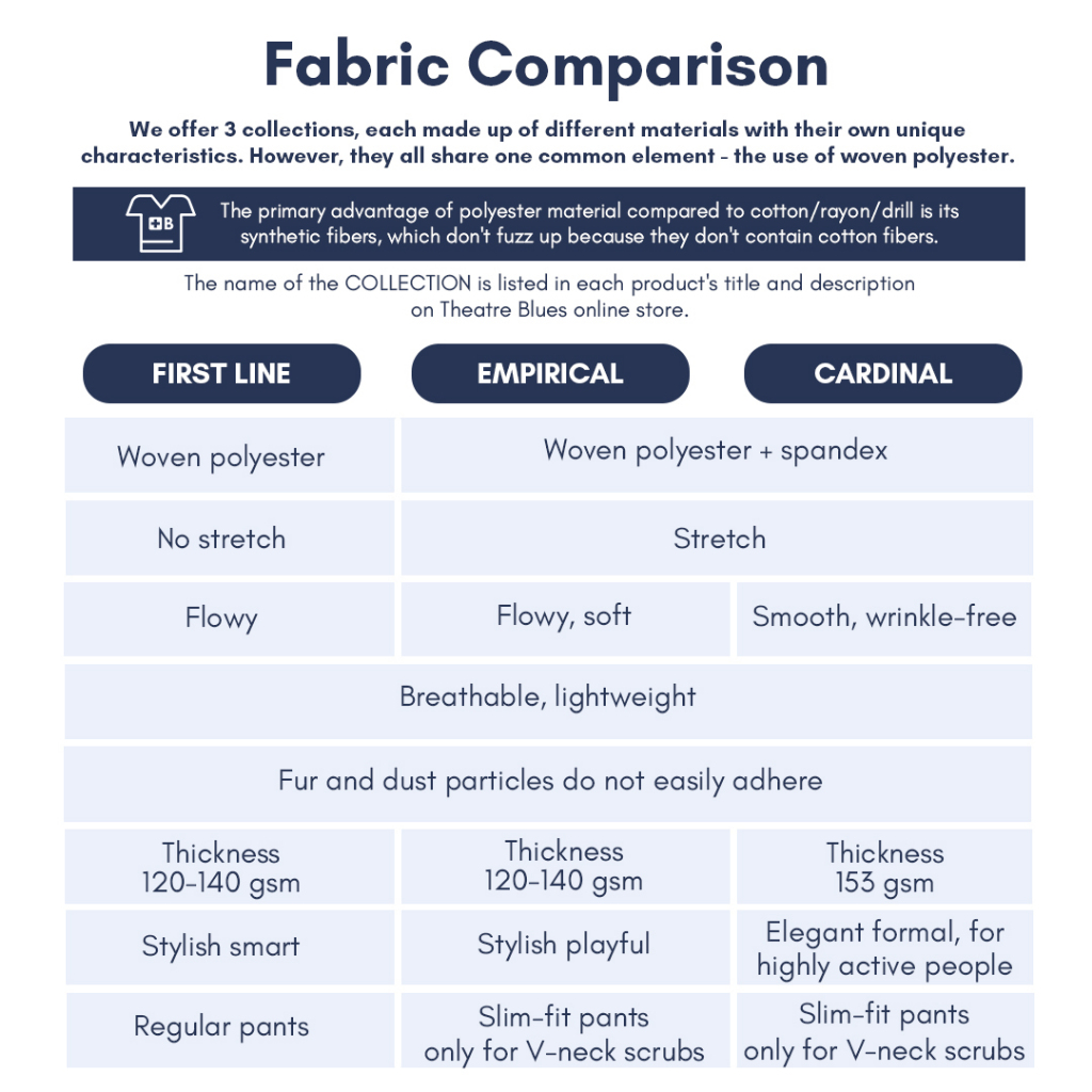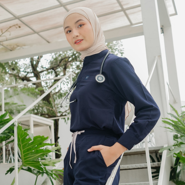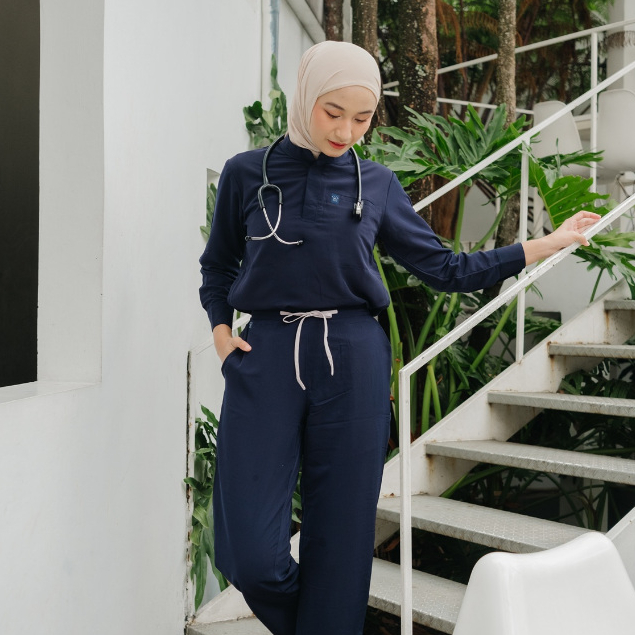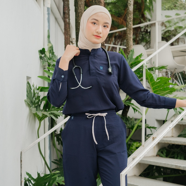 First Line - DARK BLUE MANDARIN LS Lengan Panjang Baju Jaga Scrubs Theatre Blues