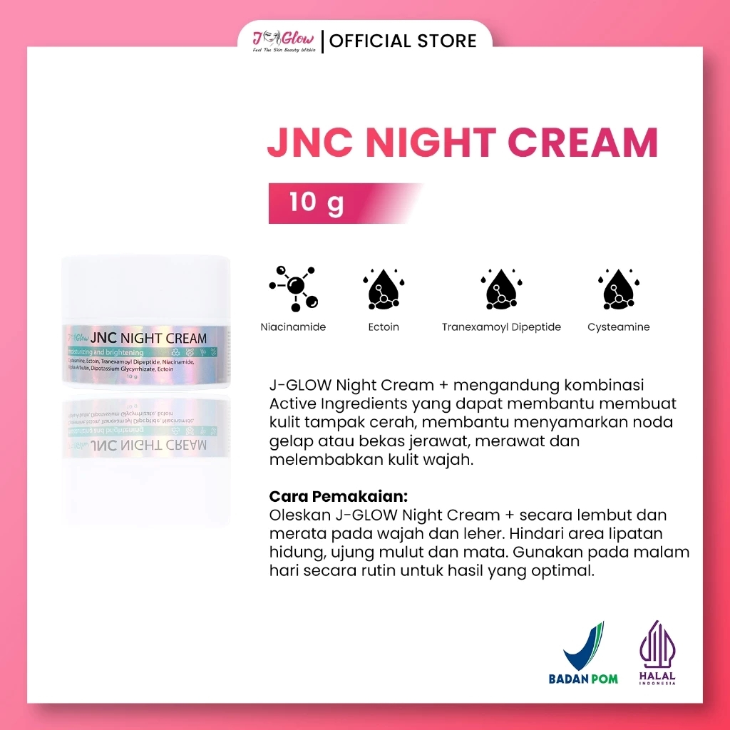 Jglow JNC Night Cream 10gr – Cerahkan Kulit & Samarkan Noda Hitam | Krim Malam BPOM Resmi