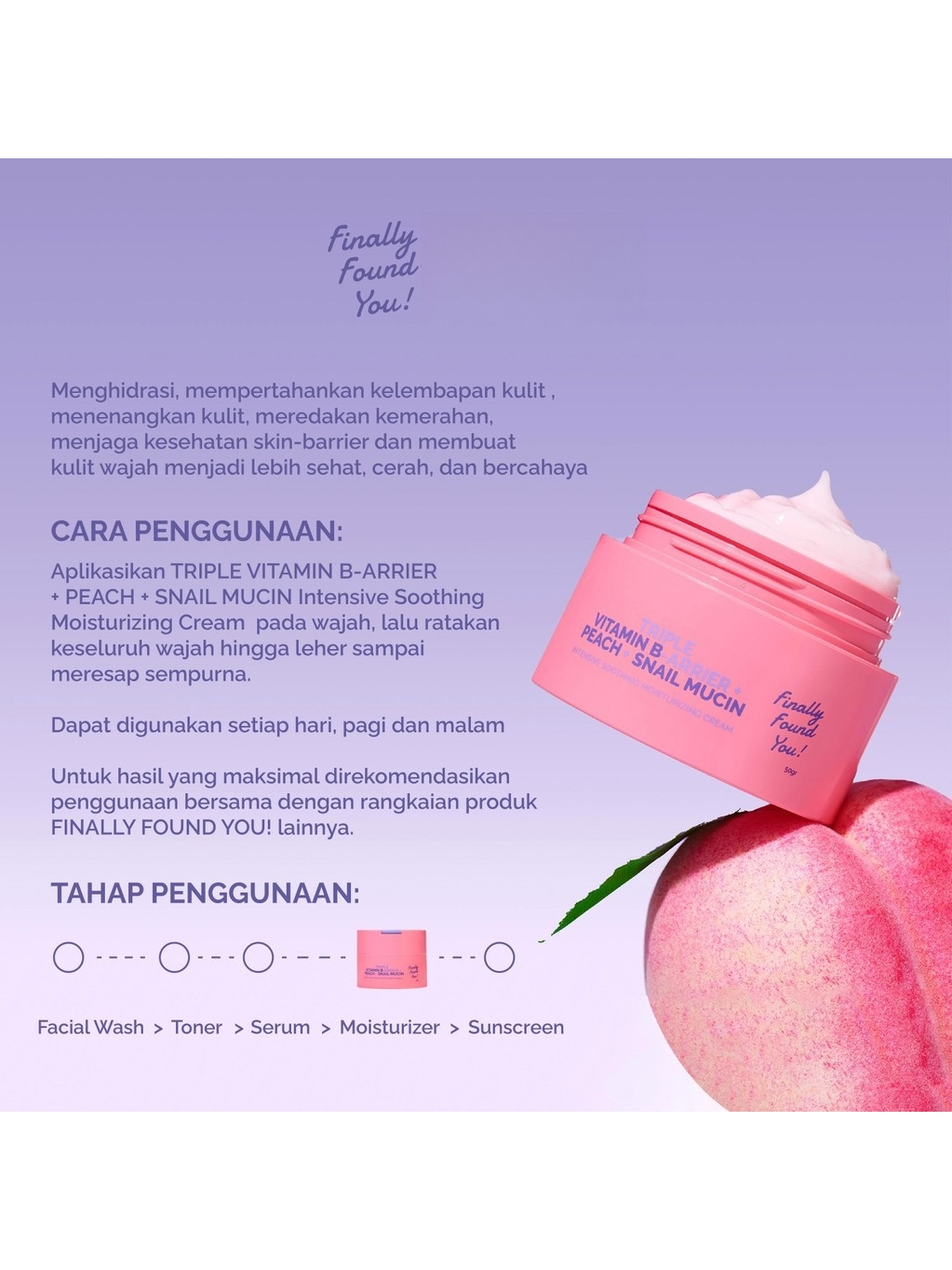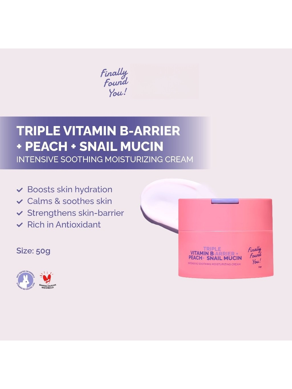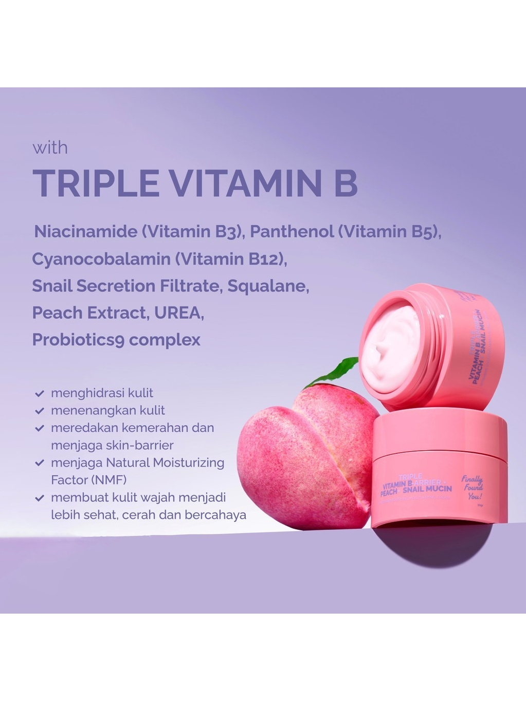 Finally Found You! TRIPLE VITAMIN B-ARRIER + PEACH + SNAIL MUCIN Intensive Soothing Moisturizing Cream 50gr | Man Corner