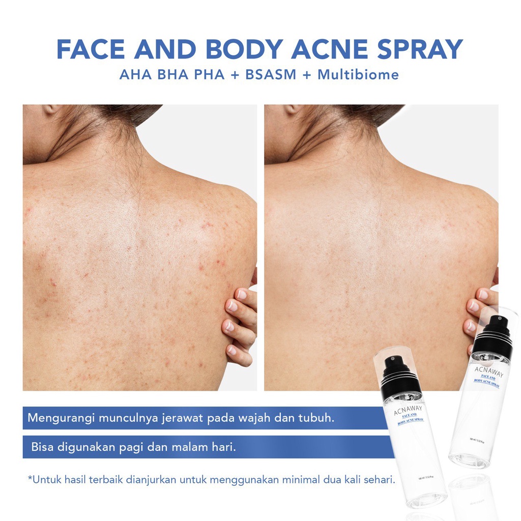 ACNAWAY Acne Face & Body Spray – Face Mist Spray Jerawat untuk Wajah & Badan | Skincare Calming Spray dengan AHA BHA PHA + BSASM + Multibiome | Penghilang Jerawat Punggung, Melembapkan & Menyejukkan Kulit Berjerawat
