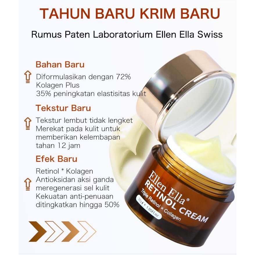 [Beli 1 Dapat 1] Ellen Ella Retinol Cream 30g + Krim Leher 120g Aging Kerut Collagen Moisturizer 30g Night Krim Face Cream Malam Untuk Pelembab Wajah Pemutih Kulit Anti-kerut Flek Hitam Krim Pelembab Wajah Melembabkan Dan Menghidrasi