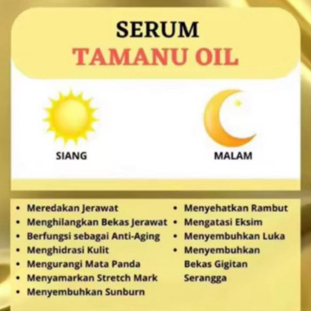 ESSENTIAL OIL TAMANU OIL ORIGINAL 10ML PENCERAH WAJAH GLOWING WAJAH PENGHILANG JERAWAT DAN HILANGKAN FLEK HITAM