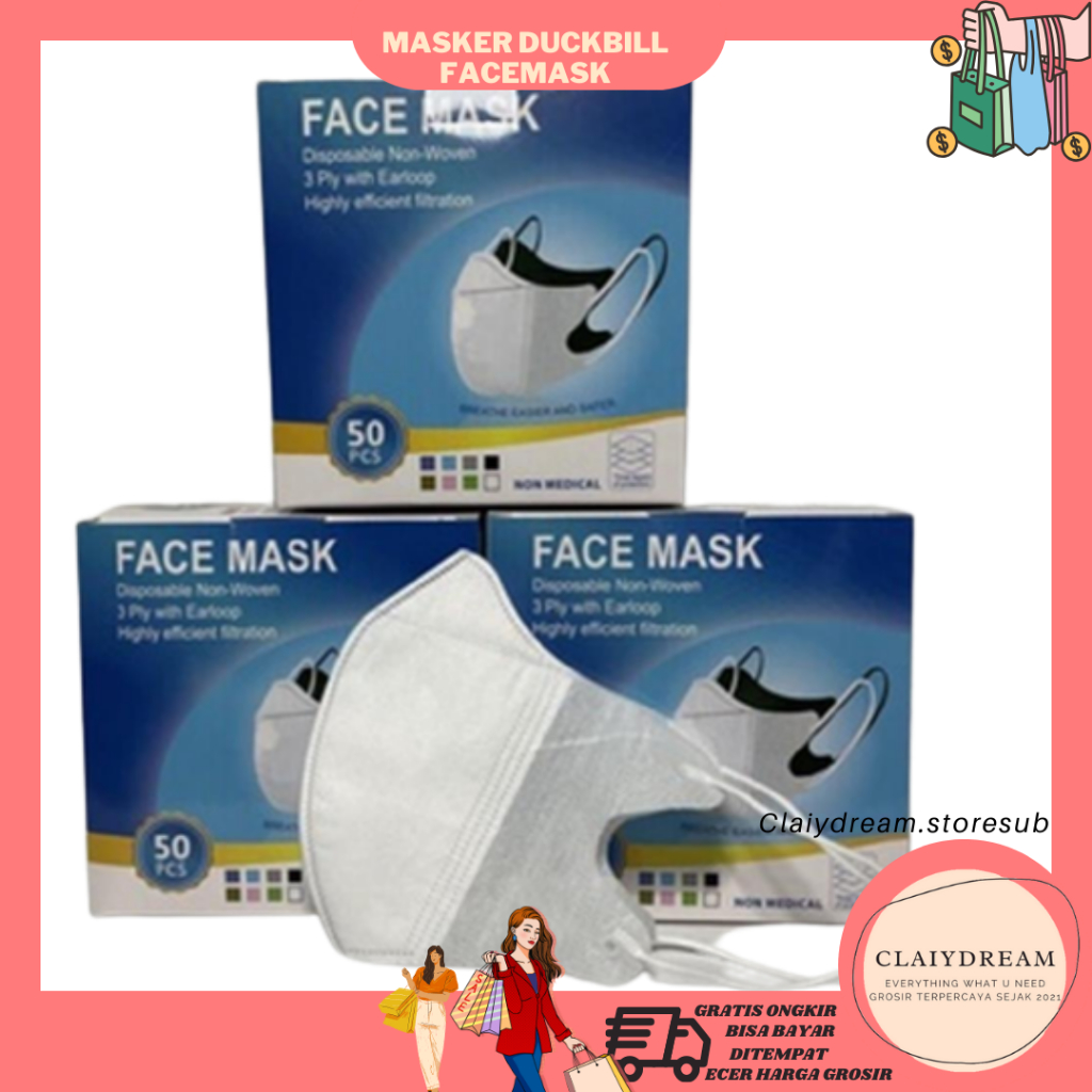 CLAIYDREAM MASKER DUCKBILL FACEMASK ISI (50) 3 LAPISAN