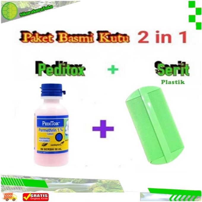 (NCS) Paket Peditox 50 ml Permethrine 1% Obat Pembasmi Kutu Rambut Sisir Serit dan Peditox Rambut Untuk Kutu Rambut plastik Stainless kayu