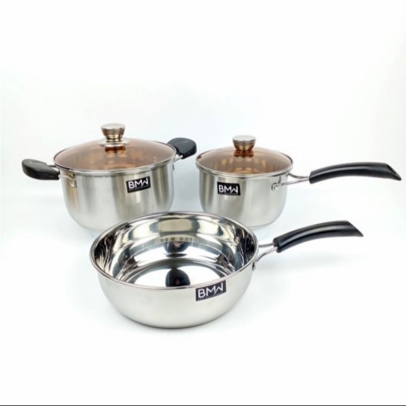 Panci Set Stainless Stell Wajan Panci BMW GandaLion Set Isi 3 Pcs