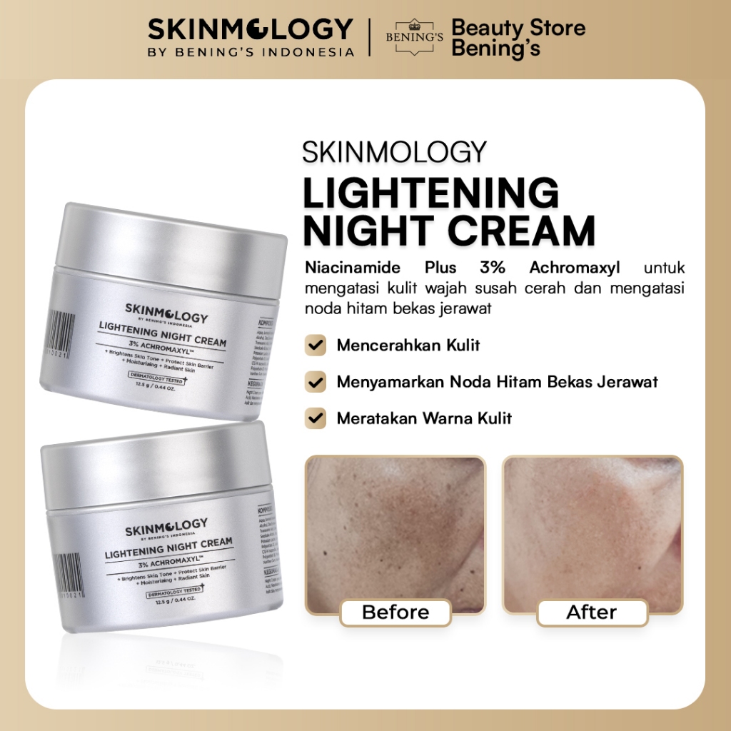Skinmology By Bening's Clinic Indonesia - Bundling Lightening Night Cream - Achromaxyl - Mencerahkan Pada Kulit Wajah - Untuk Wanita Pria