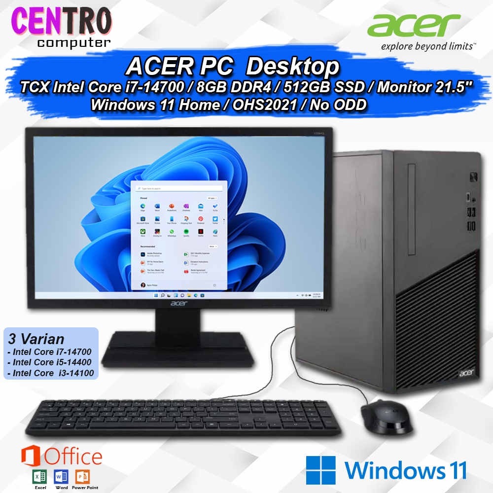 Acer PC Desktop TCX Core i7-14700 8GB RAM 512GB SSD Windows 11 Home + OHS21 Mouse Keyboard Monitor 21.5" Komputer Desktop