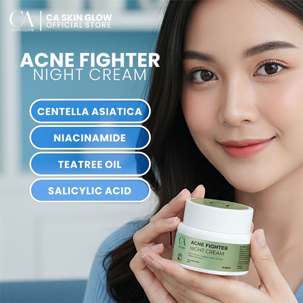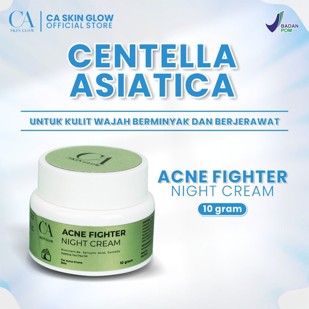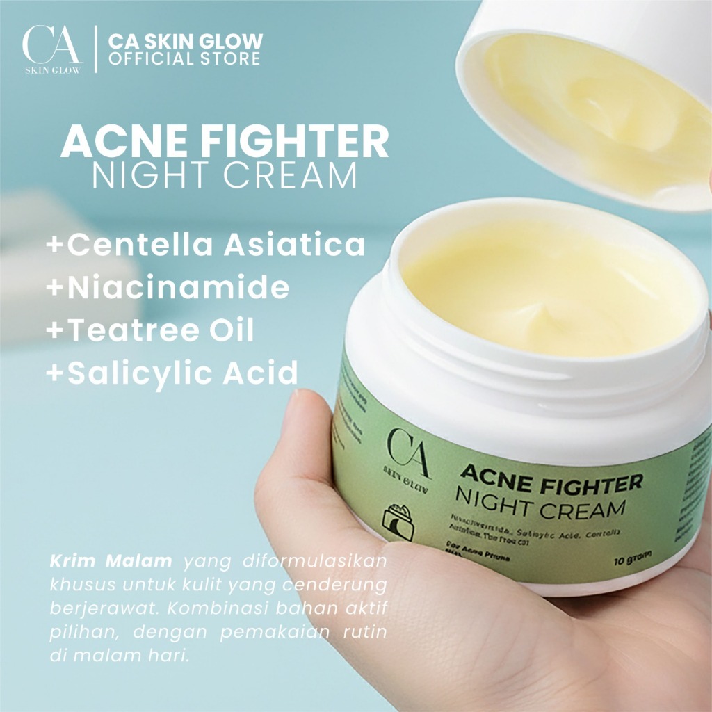 Acne Fighter Night Cream CA SKIN GLOW – Night Cream untuk Kulit Berjerawat, Bantu Menenangkan & Mengontrol Minyak | BPOM