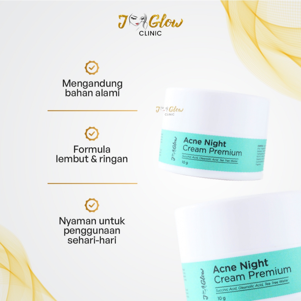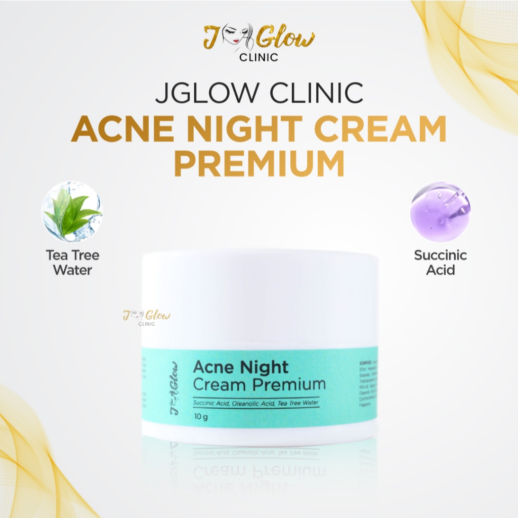 JGlow Clinic - Acne Night Cream Netto 10gr Mengandung Bahan Alami Tekstur Ringan