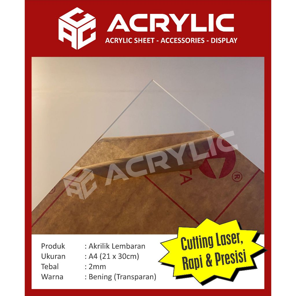 AKRILIK / Acrylic lembaran Bening Uk. A4 2mm (21cm x 30cm) MARGA CIPTA