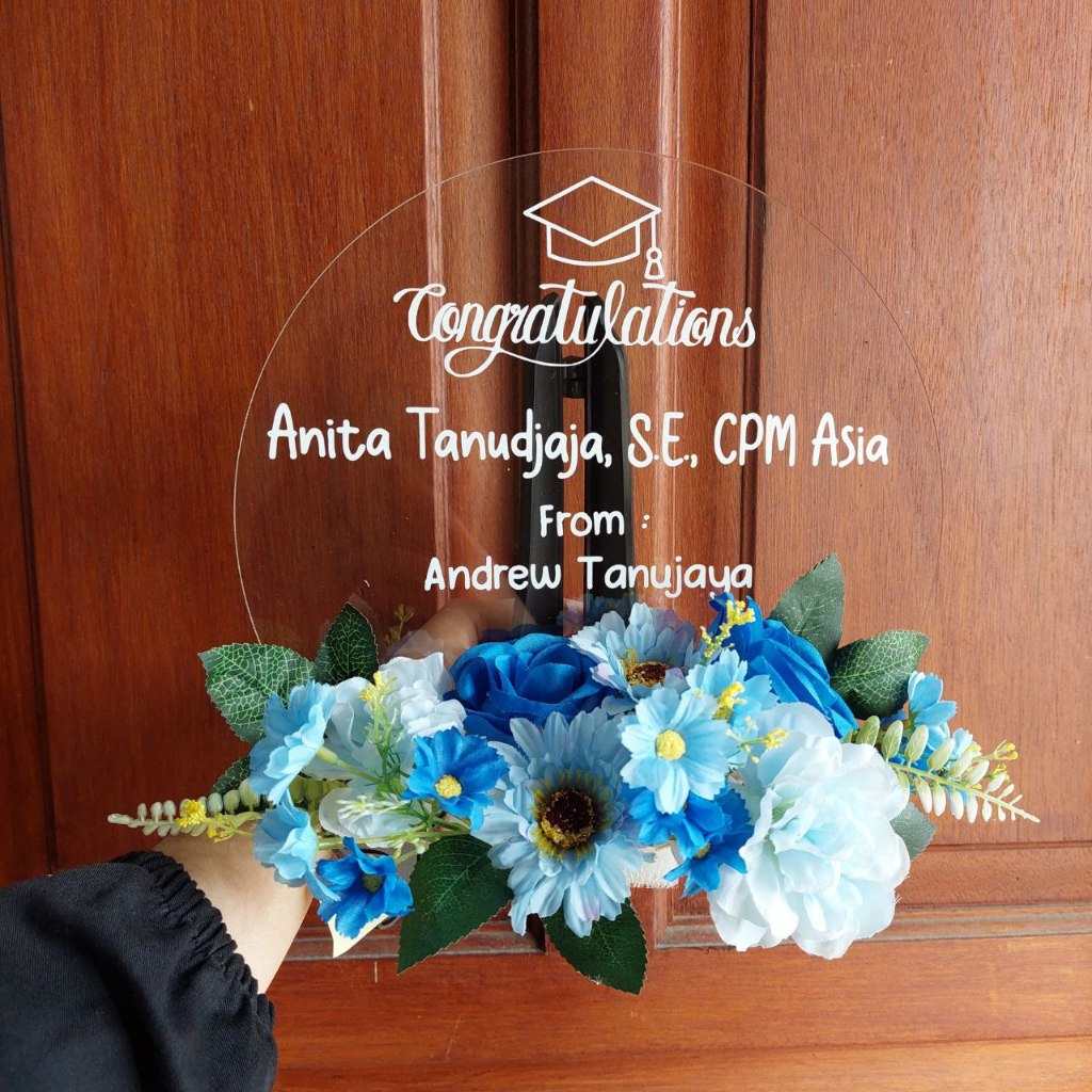 Acrylic stand hitam + Bunga - Tjeplis.id