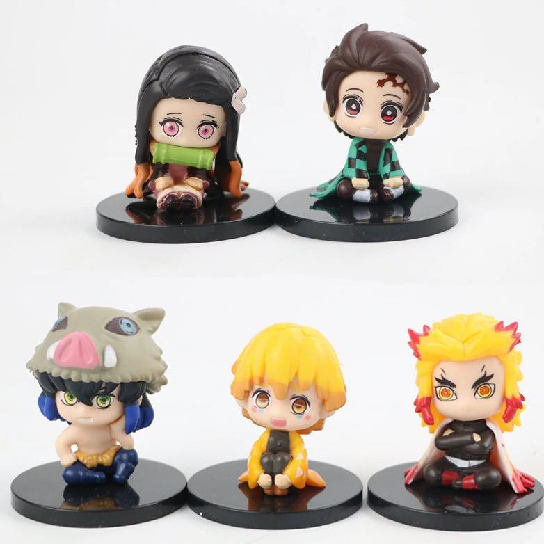 Action Figure Set Anime Kimetsu No Yaiba Chibi Ver. Tanjiro Nezuko Demon Slayer Kimetsu Hashira