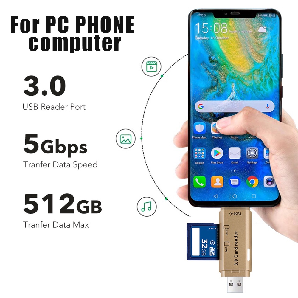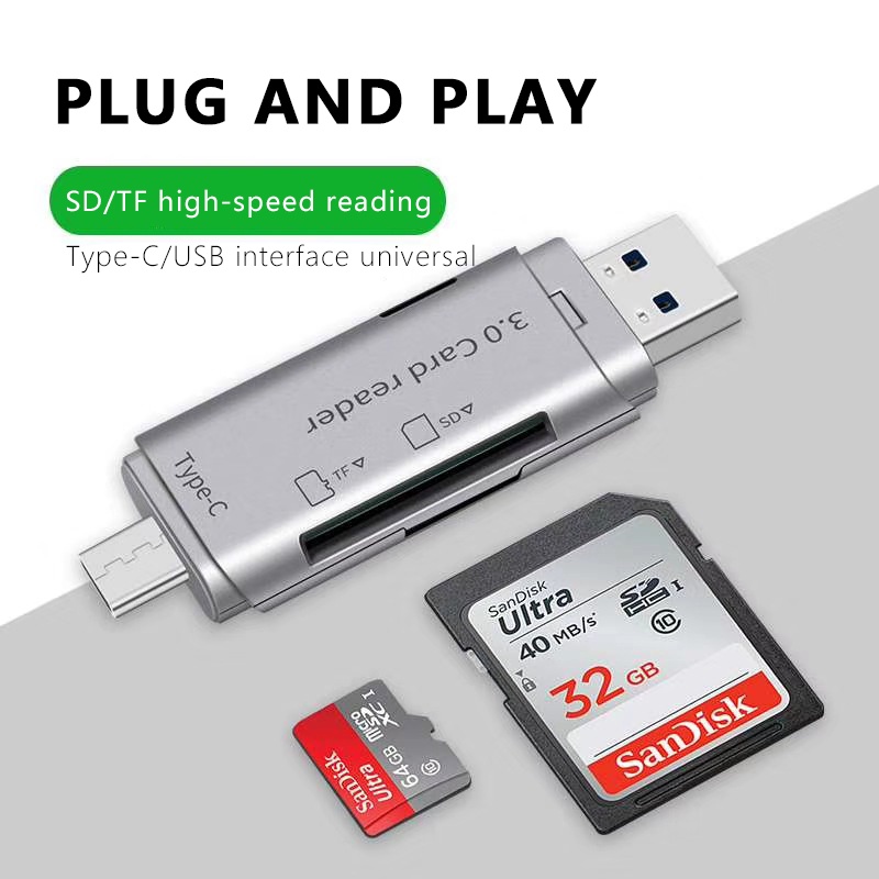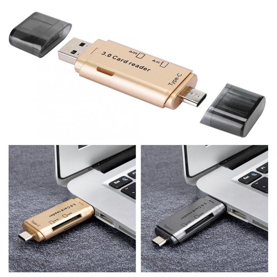 Actual 4 in 1 Card Reader High-Speed Smart 3.0 Metal Type C / Micro USB / SD Card / TF Memory Card Read OTG Adapter