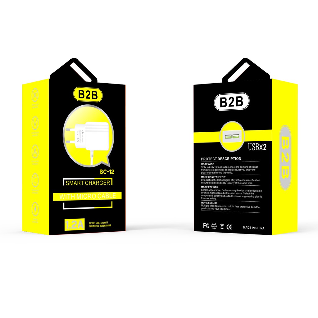 Adapter Charger USB 2 PORTS Power Adapter B2B BC-12 With Micro Cable