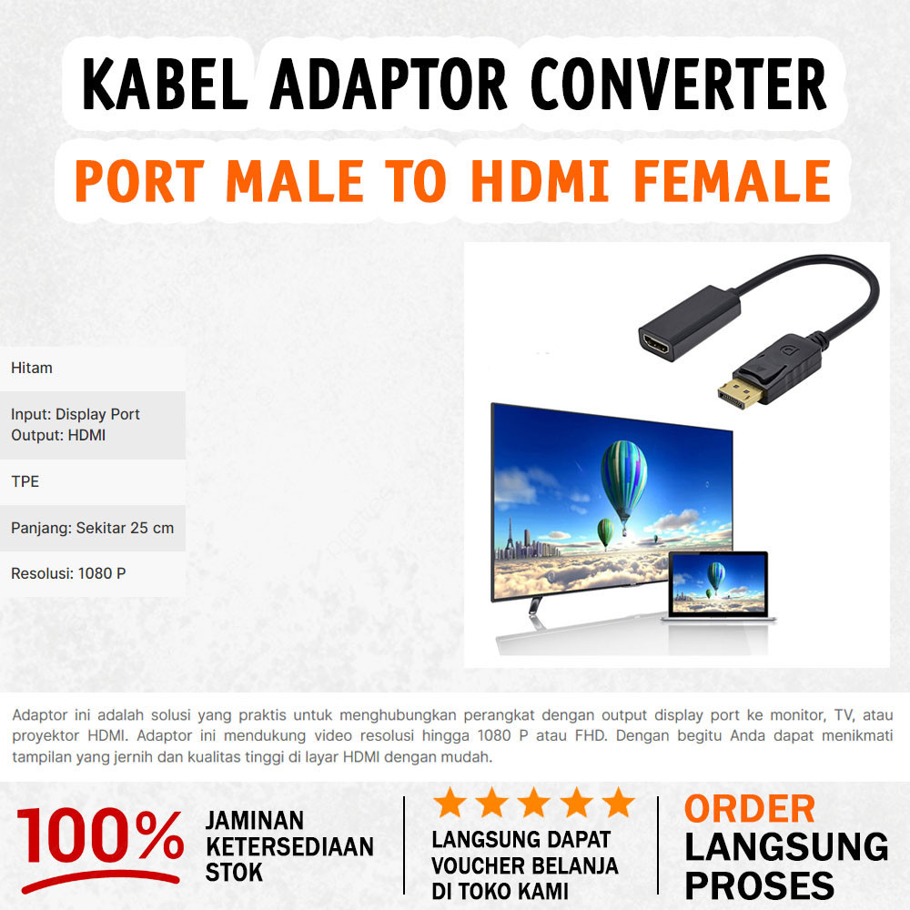 Adapter Converter DisplayPort to HDMI - Black