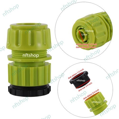 Adapter Konektor Sambungan Kran Drat 1/2 3/4 Inch Selang 1/2 16mm