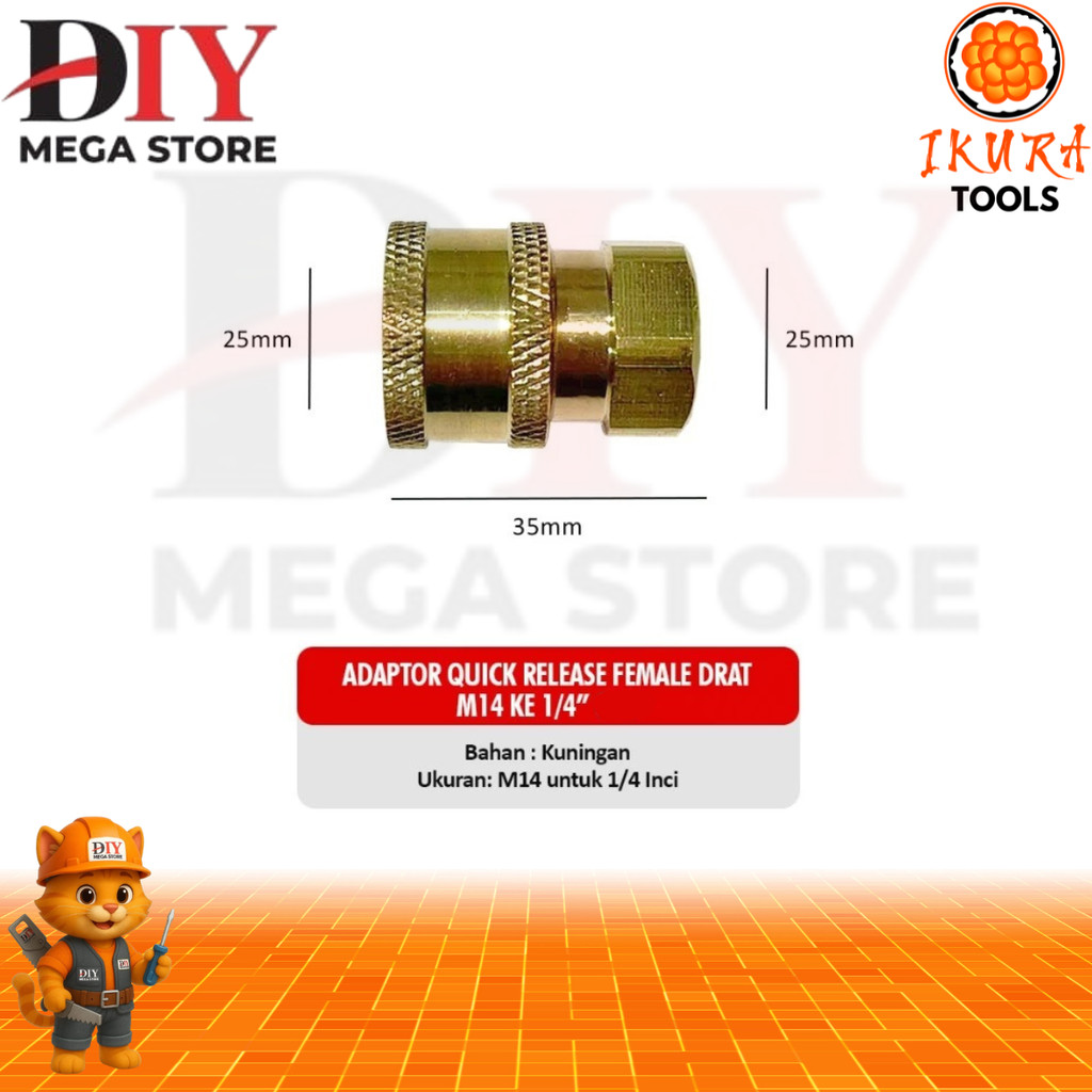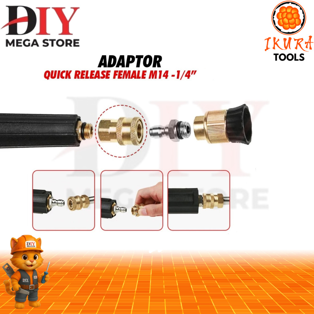 IKURA TOOLS Adaptor Quick Release M14 1/4" - Sambungan Ujung Gun Jet Cleaner Kodenki Menjadi Quick Release Adaptor - Sambungan QRJ Selang Ukuran M14 Female adaptor 1/4" Adapter Nozzle Tip Faom Lance Jet Cleaner - Nepel Adaptor Quick Release Adaptor Cewek