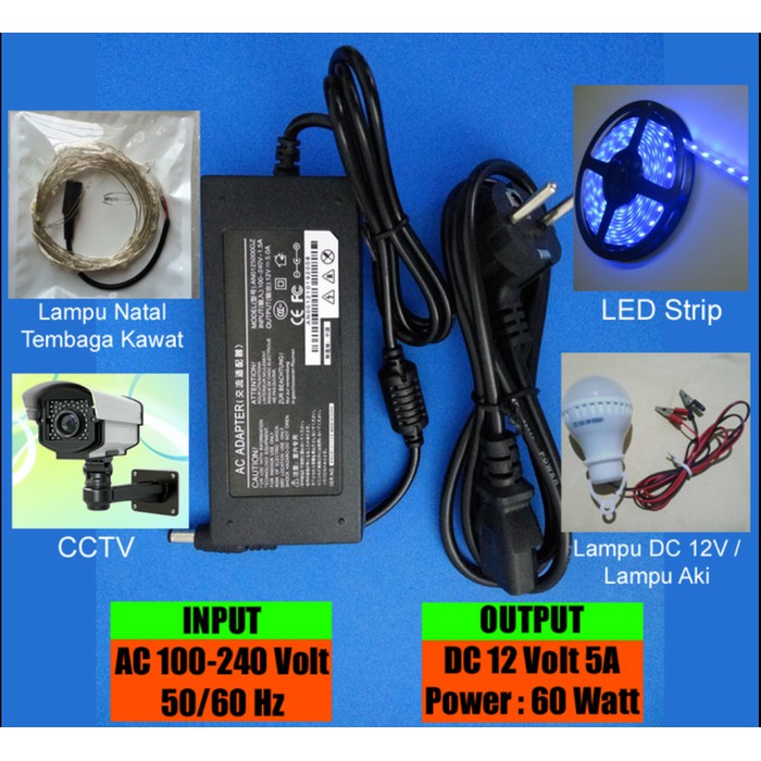 Adaptor Adapter 12V 5A 60W / 12 Volt 5 Ampere 60 Watt Ac/Dc