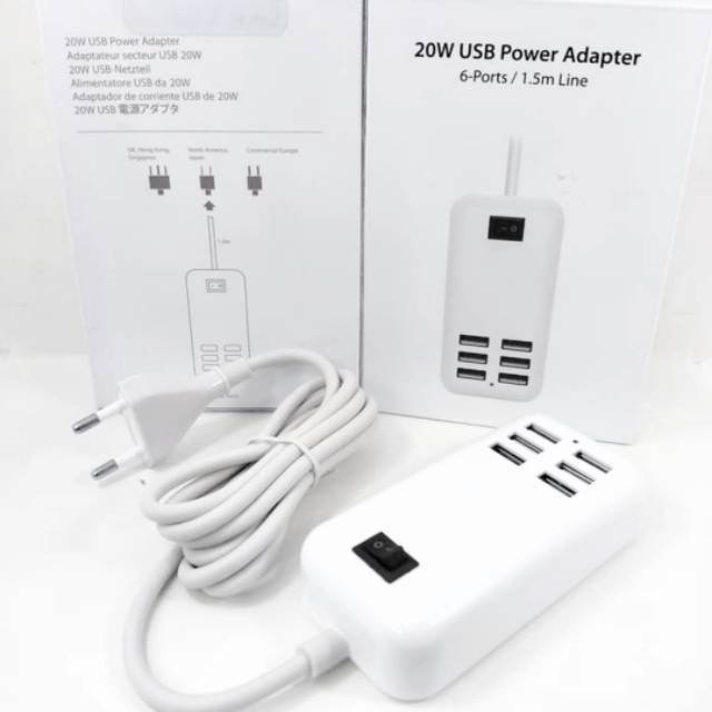 Adaptor Charger 6port 20W / Travel Adaptor Usb Charger 6 port 20 watt