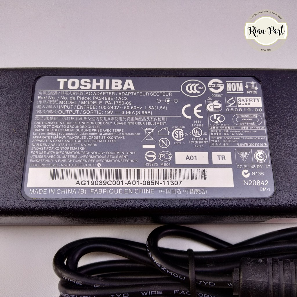 Adaptor Charger Laptop Toshiba C600 C600D C640 19V 3.95A 5.5 x 2.5mm